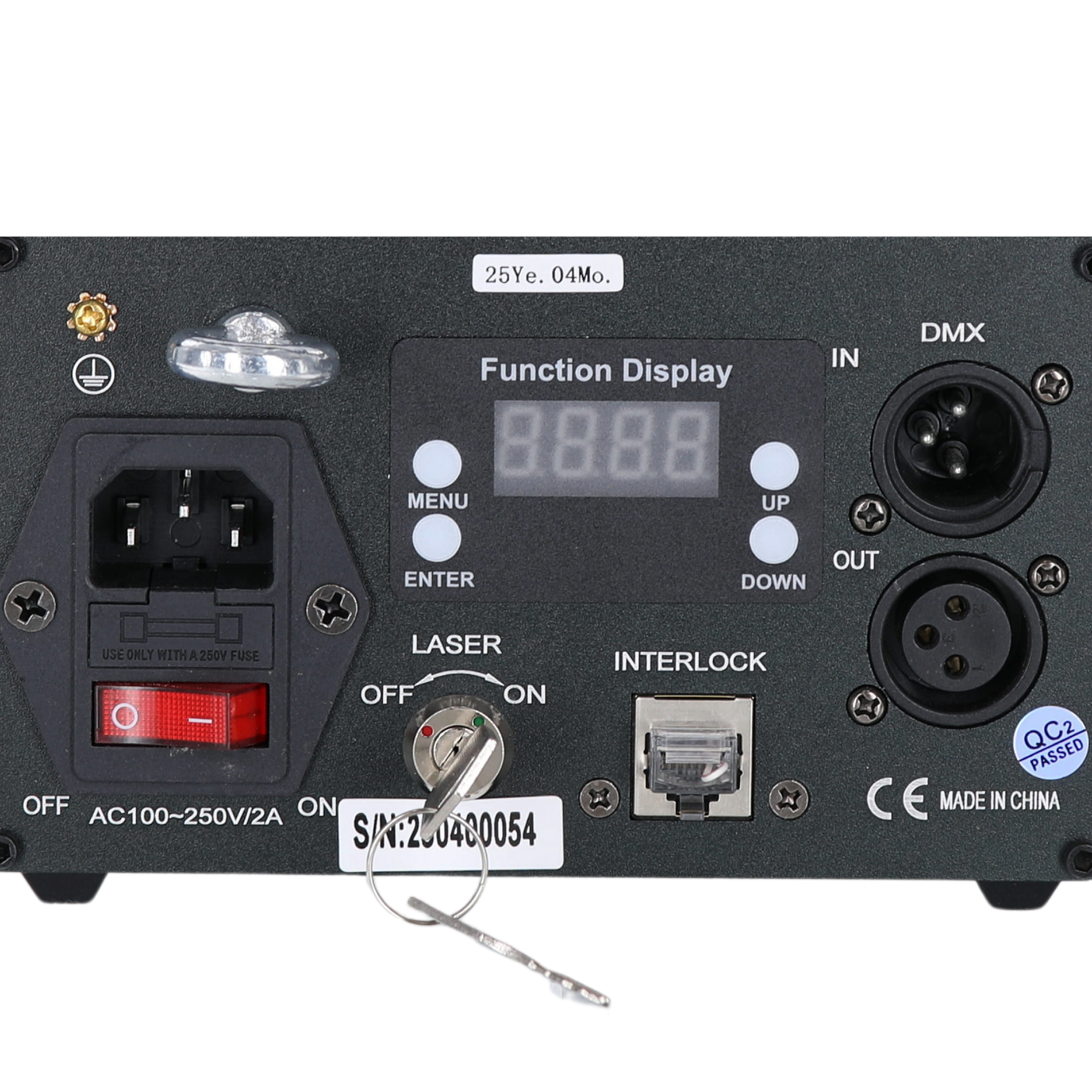 Doté de modes Auto, Son et DMX 512, de nombreux programmes intégrés (formes, animations, faisceaux), et d’un scanner haute vitesse 15KPPS, il garantit une expérience visuelle fluide et immersive. Son écran LED, sa connectique XLR et ses fonctionnalités de sécurité intégrées en font un outil simple à utiliser, fiable et parfaitement adapté aux professionnels de l’éclairage.