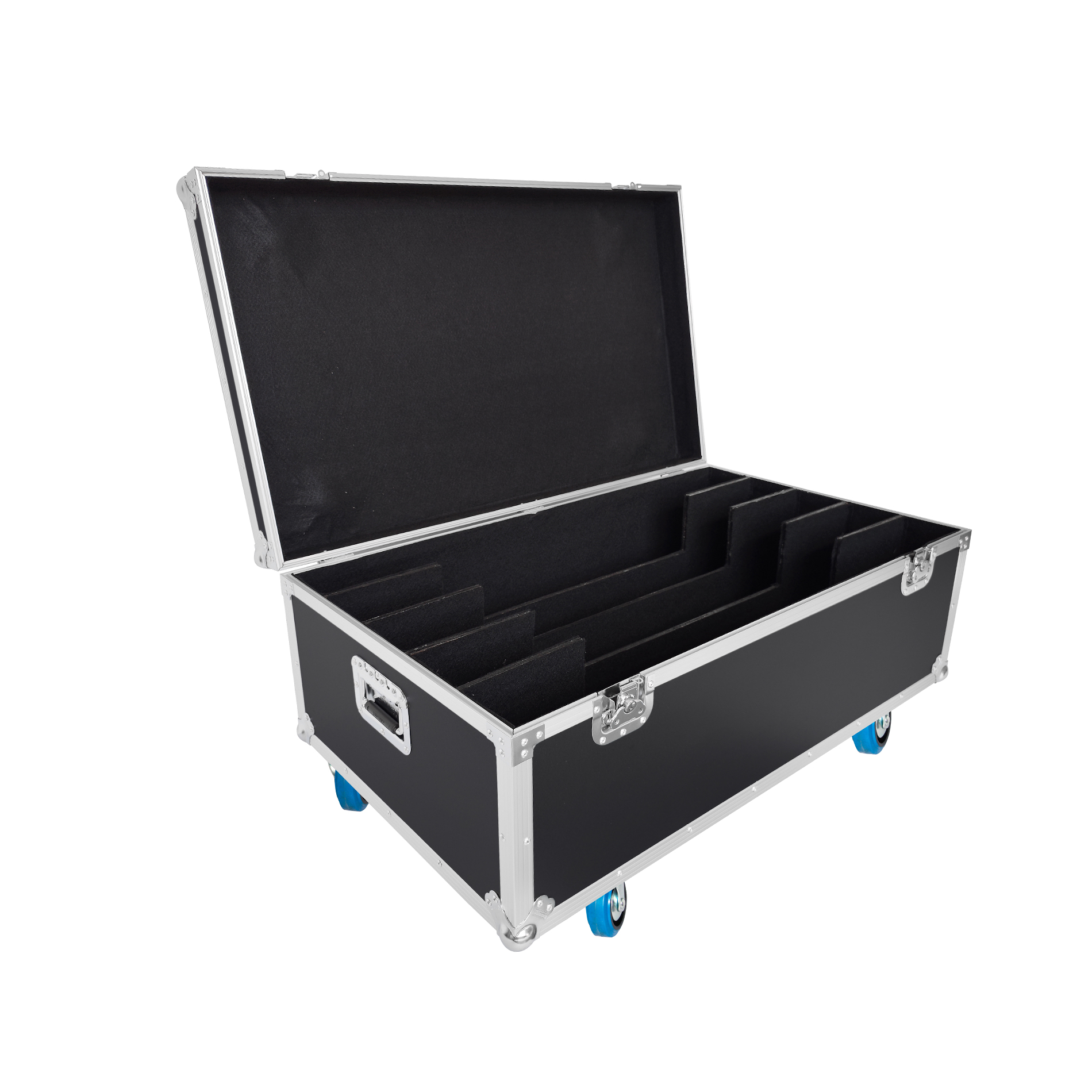 Flight-case multi plis spécialement conçu pour le transport de 10 barres d’éclairage d’un mètre.