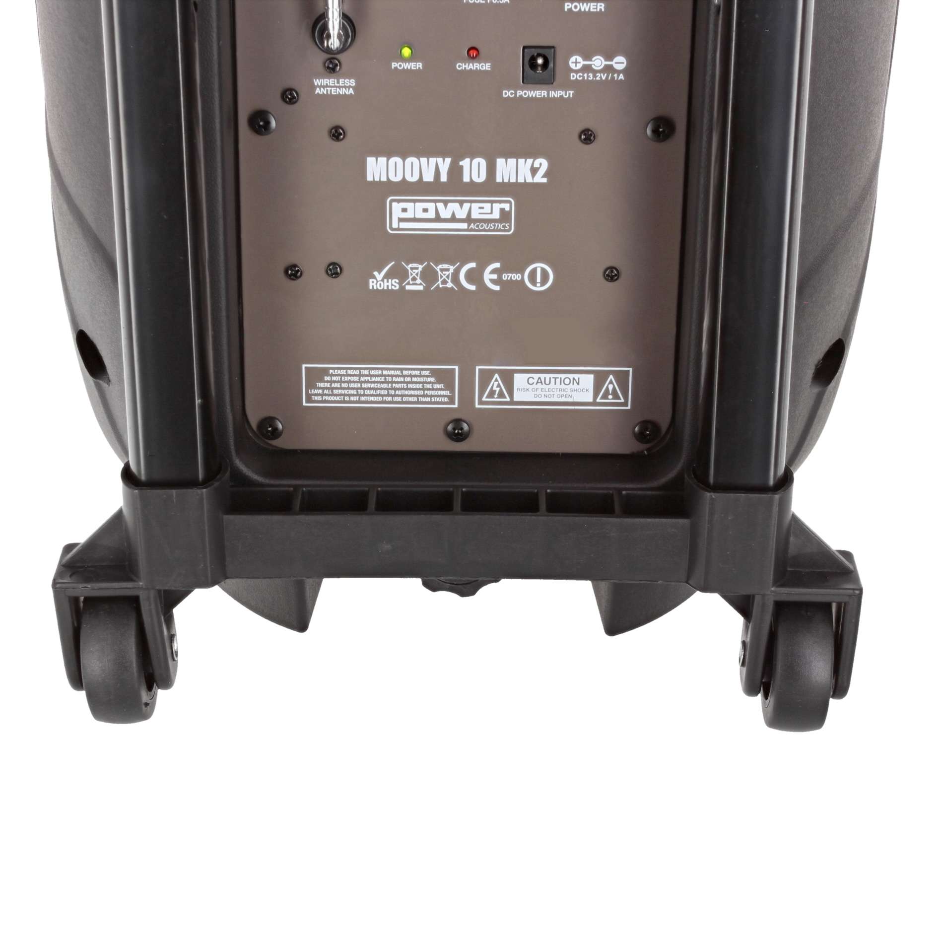 La MOOVY 10 MK2 fait partie de la toute nouvelle gamme de sonos portables de POWER ACOUSTICS. Avec son format compact, sa batterie intégrée, son trolley rétractable avec roues et son microphone sans fil VHF, la MOOVY 10 MK2 sera la sono portable idéale pour vos prestations.