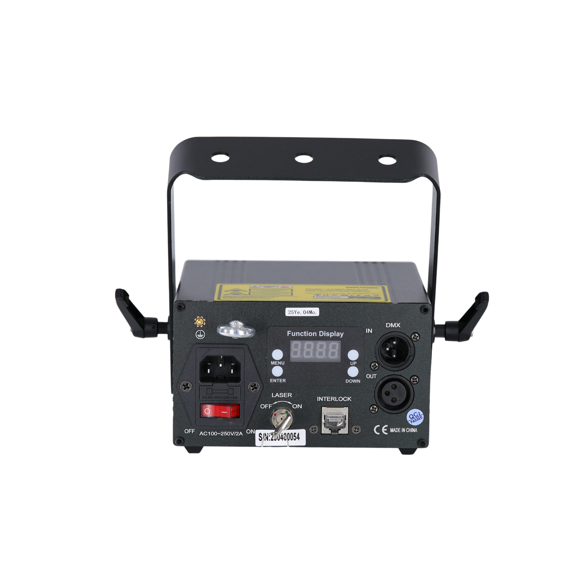 Doté de modes Auto, Son et DMX 512, de nombreux programmes intégrés (formes, animations, faisceaux), et d’un scanner haute vitesse 15KPPS, il garantit une expérience visuelle fluide et immersive. Son écran LED, sa connectique XLR et ses fonctionnalités de sécurité intégrées en font un outil simple à utiliser, fiable et parfaitement adapté aux professionnels de l’éclairage.