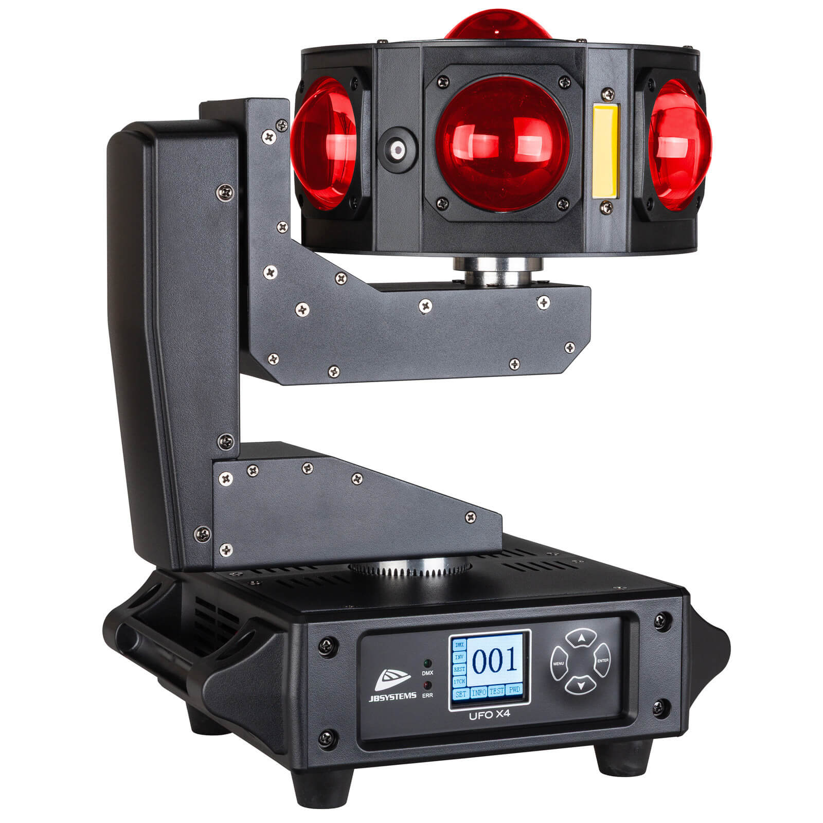 UFO X4 : Quatre effets en un seul boîtier pour un impact visuel maximal. Combine lasers RGB 50mW, strobes orange 10W, 28 LEDs RGBW 3W (7 lentilles) et 108 LEDs RGB pour patterns dynamiques. Sa tête rotative remplit généreusement vos espaces de danse avec une polyvalence inégalée, parfaite pour clubs, installations fixes et loueurs premium. Pilotage flexible en mode automatique, réactif au son ou via DMX (1 à 25 canaux), avec possibilité de synchroniser plusieurs unités ou d’ajouter le contrôle sans fil via dongle Briteq WTR-DMX en option. Utilisable au sol ou suspendu.
